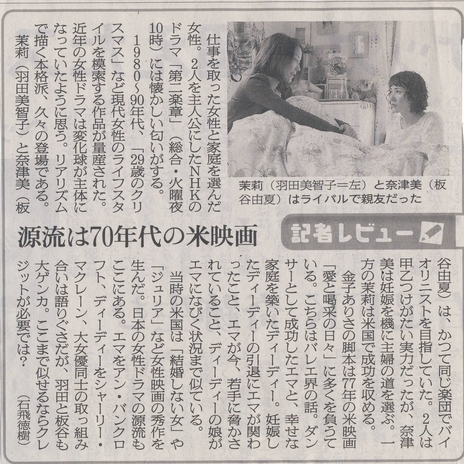 2013年6月8日2013年6月12日 By EnglishNetwork 新聞記事 朝日新聞記事より ご覧になっている方も多いと思いますこのドラマ「第二楽章」、ストリーはアメリカの70年代の映画「愛と喝采の日々」にかぶるところが多いという意見もあるそうです。「愛と喝采の日々」を見たくなりますね。
